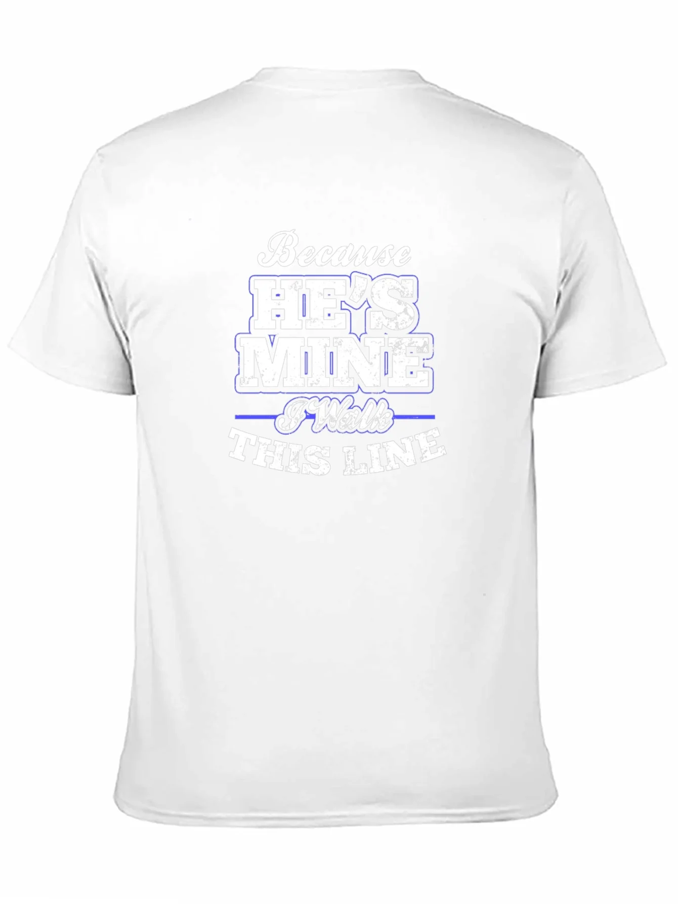 Muestra tu orgullo con esta camiseta negra de manga corta. Confeccionada en un material que parece ser suave y c¨®modo, esta camiseta presenta un dise?o audaz en color blanco y azul con la frase "Because HE'S MINE I Walk THIS LINE". Perfecta para llevar en eventos casuales, salidas con amigos o simplemente para expresar tu cari?o de una manera original y divertida. Su dise?o llamativo la convierte en una prenda ideal para destacar y hacer una declaraci¨®n de estilo. Comb¨ªnala con jeans, pantalones cortos o faldas para crear looks vers¨¢tiles y modernos. ?Una adici¨®n imprescindible para cualquier guardarropa!